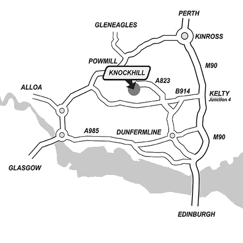 - If travelling from the East or South, head to Junction 4, M90 motorway (Kelty).